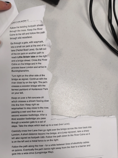 The observation of language ambiguity in the guide sparked further exploration to decipher the intended route. As an example, I found myself confused at the sentence "turn away from the river", as we were on a straightforward path that had no clear indication of any parallel paths that would eventually turn left or right. For a moment this caused some confusion but we soon enough realised that this implied maintaining our path until we met a path that led to the right.
